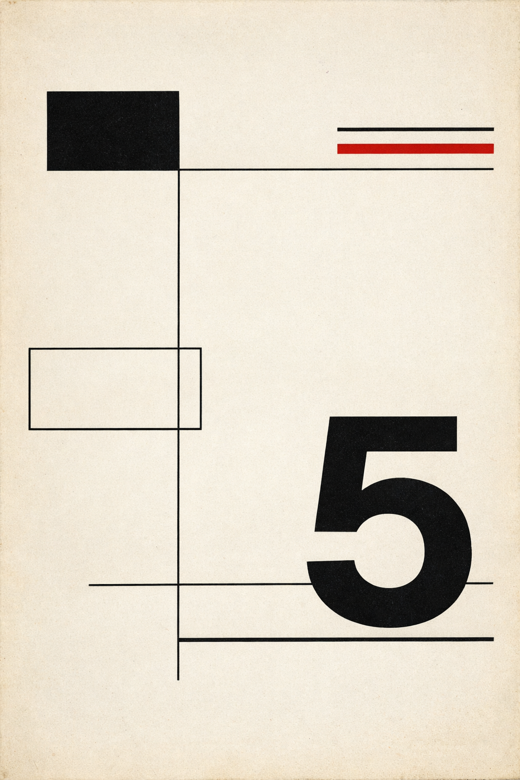 The supplied image matters less as a poster to copy and more as evidence of the recurring ingredients: compressed type, sharp bars, cropped geometry, and a restricted palette.